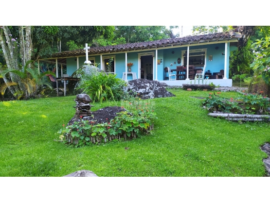 Esta propiedad consta de una casa de campo con dos habitaciones, dos baños, cuarto de lavado, cocina sala, comedor y cuarto de herramientas, ademas cuenta con corredores sobre el frente y en uno de sus laterales, su area es de 117mts2, tambien cuenta con una cabaña de y habitacion con su baño y una cocineta equipada con todo su area es de 26m2, posee con un kiosko de 22m2, tambien unas piscinas en piedra que recorren el lote con un agua corriente totalmente canalizada, al igual que una pileta con el agua del nacimiento donde tiene un cultivo de peces y con una plataforma con un sitio para hacer fogatas,
